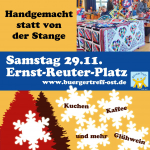 Hobbykunst und Kreativmarkt, Winterzauber Der Bürgertreff-Ost lädt zu einem bunten Nachmittag am Ernst-Reuter-Platz ein Am Samstag, ... 29 Nov. 12:00 - 17:00 Adolf-Hölzel-SaalErnst-Reuter-Platz, Dachau